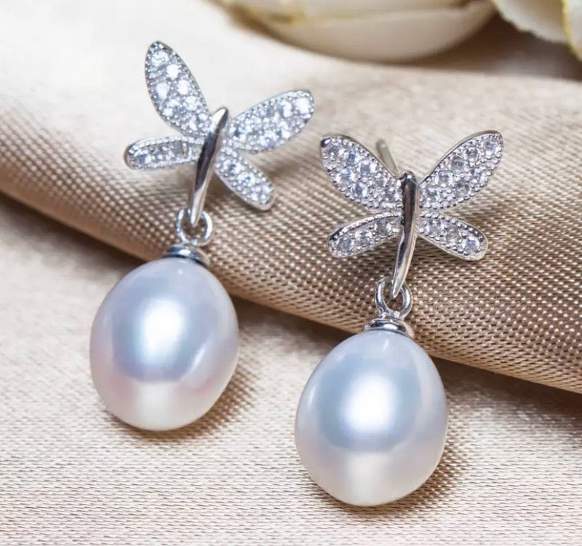 Butterfly Diamond and Freshwater Pearl Earrings.