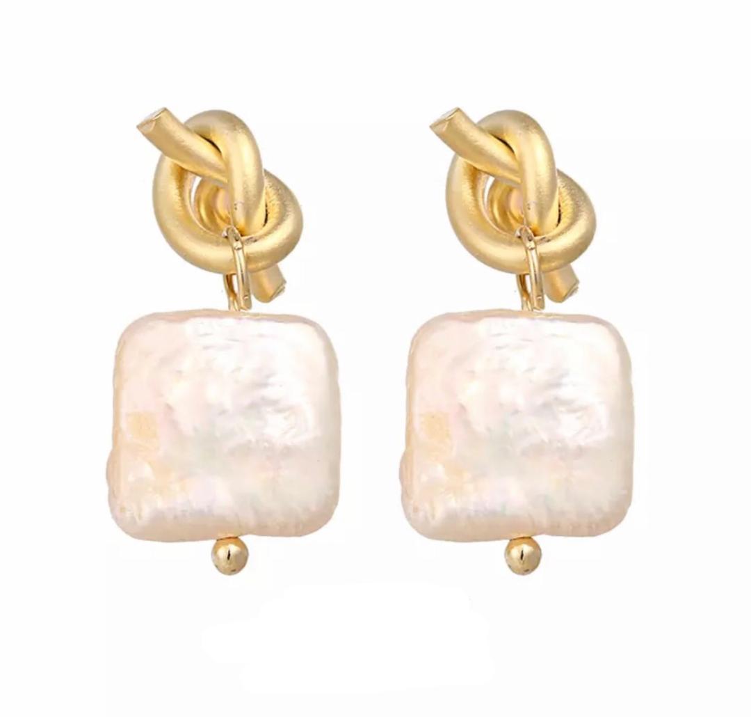 Natural Freshwater Pearl Knot Style Stud Earrings